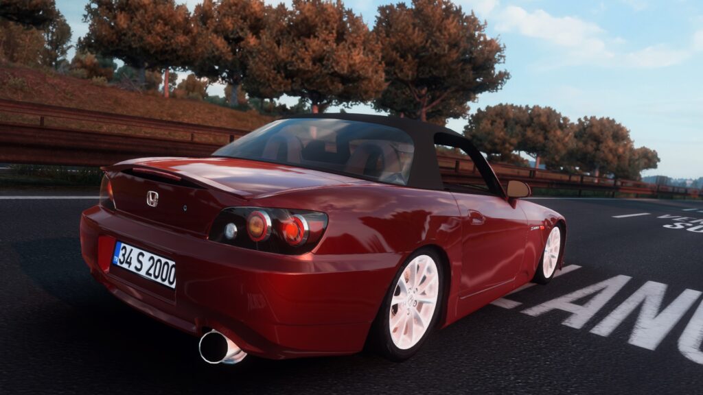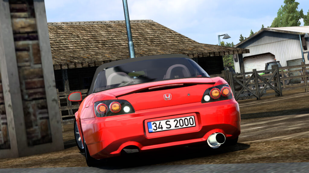 Honda S2000 for ATS – this mod adds a high quality sport car for ETS2 and ATS players. The Honda S2000 car mod for Euro Truck Simulator 2 optionally includes several roof options, hard or canvas, of different colors, there is also a variation of the convertible. From power units to the virtual driver, engines for 170 and 391 horsepower are available, the power of which can be tested on the racetrack. The Honda S2000 is a two-seater sports car that was manufactured by Honda from 1999 to 2009. It was introduced at the Tokyo Motor Show in 1995 and was Honda’s first production vehicle with an all-aluminum body.