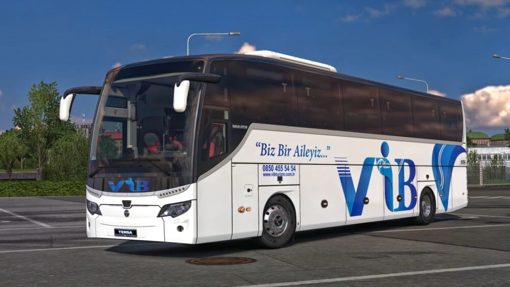 Heavy Vehicles Turkey Vib Turizm skin for the Temsa Maraton VIP mod is with you. It appears in Custom Template 1. Put the mod on top of the car mod for the mod to work.
