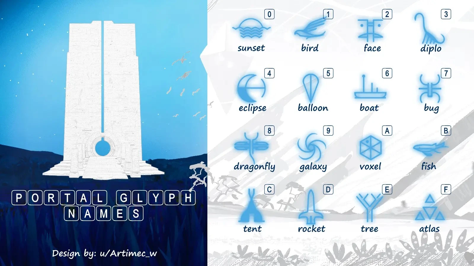 For better memorization and easy publishing portal addresses i’ve added additional info for each glyph.