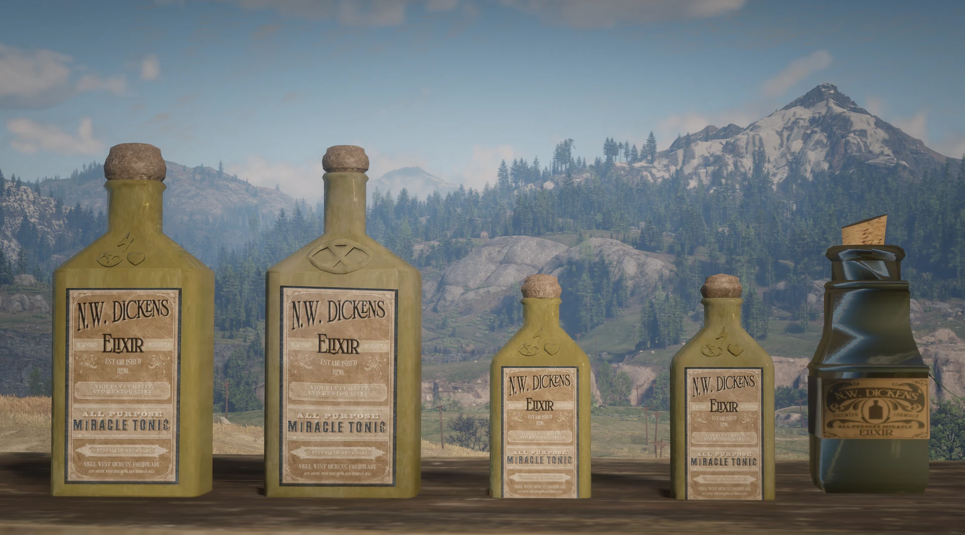 Edits both the normal and potent miracle tonics to fit the Nigel West Dickens brand in the Red Dead Redemption universe.