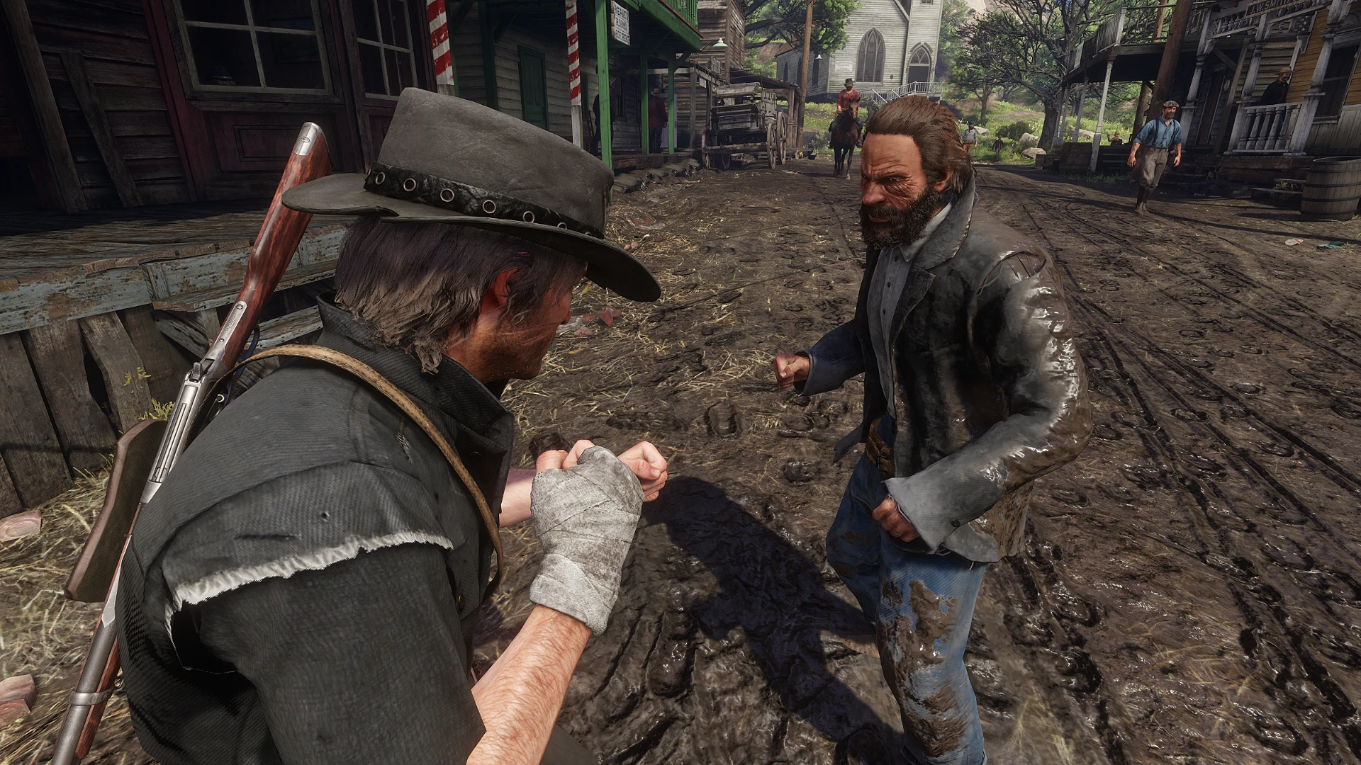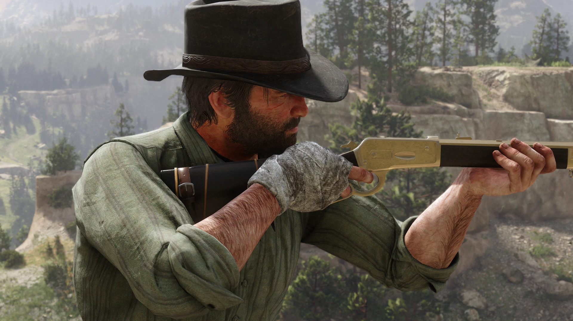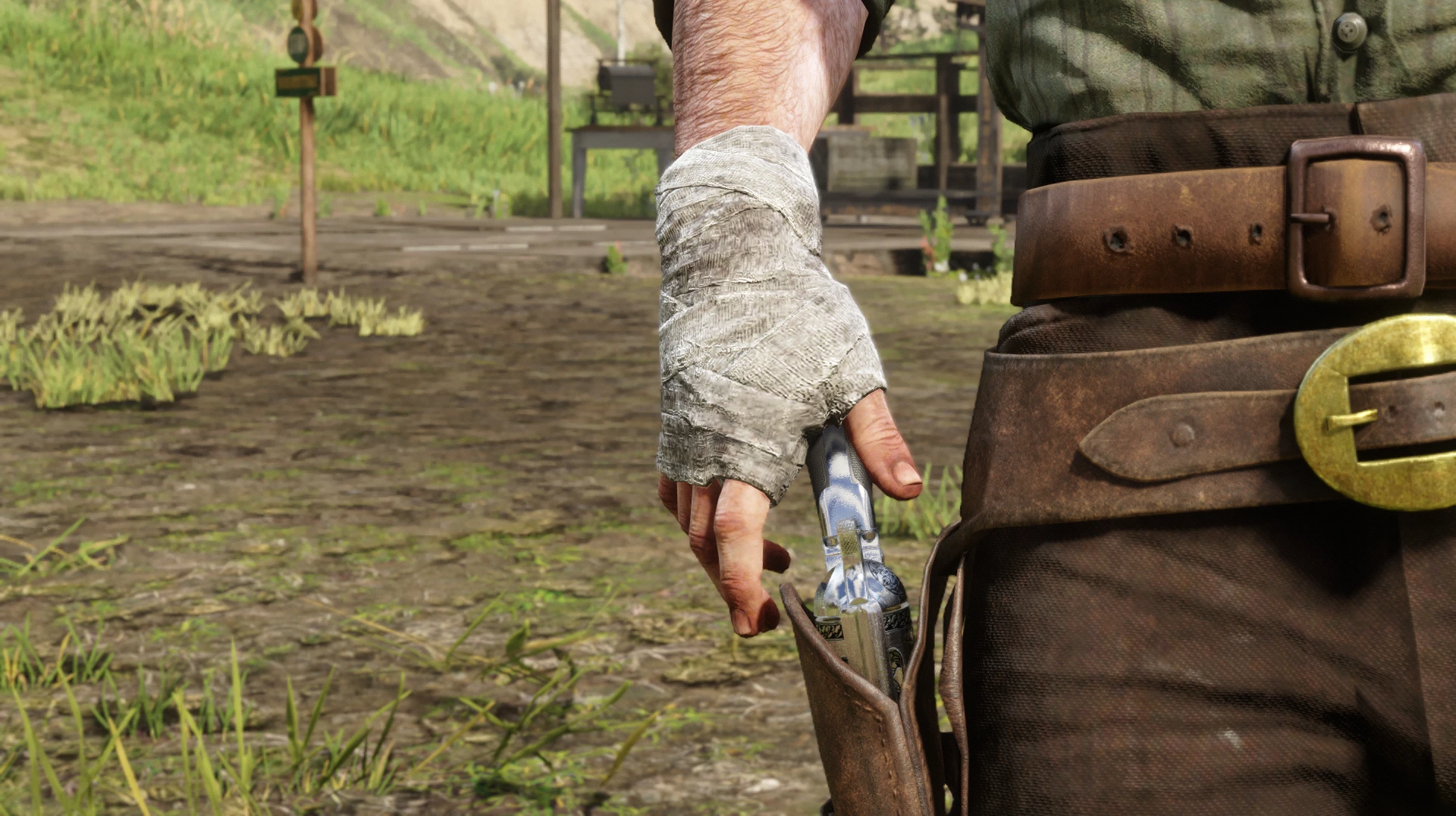 This isn’t any different from my other previous mod besides the Bandage being on the right hand. The Bandage is replaced as a Talisman (Raven Claw Talisman to be exact) which comes with Charles his original texture. The Bandage looks already a bit rough like and I thought it would fit better than having the same texture from the other mod. You can still use the texture from here Bandage Talisman if you want. Overall the Bandage kind of fits with the Injury system and it would have been nice to have options to apply Bandages on either Arthur or John. This Bandage works on both, Arthur and John. The Clipping has been fixed whenever aiming with an Rifle or whatever. Big thanks to LeBakou for helping with the xml.