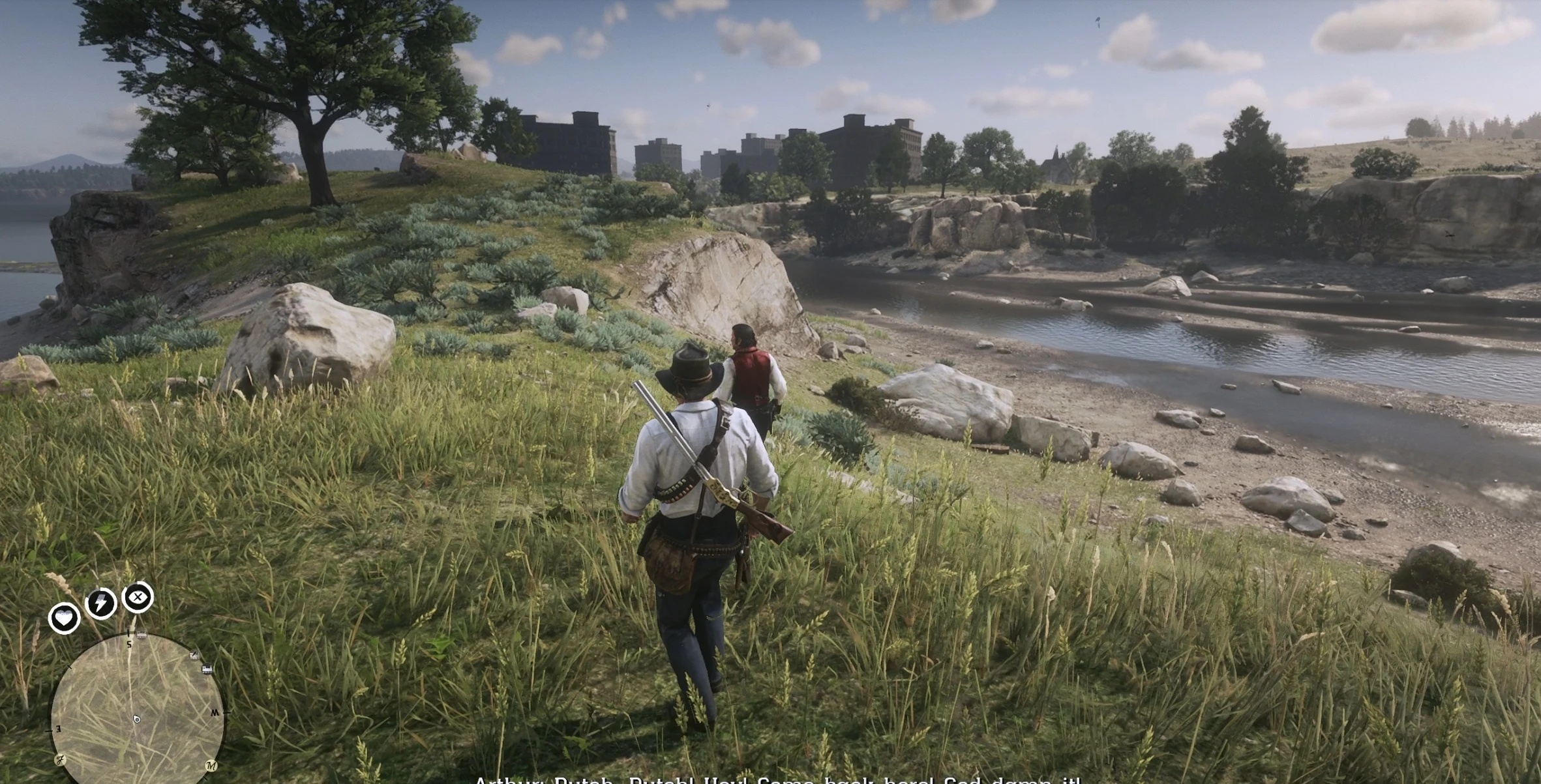 After Arthur receives word that Uncle is waiting for him at Riggs Station, he travels to meet him. The two set off on