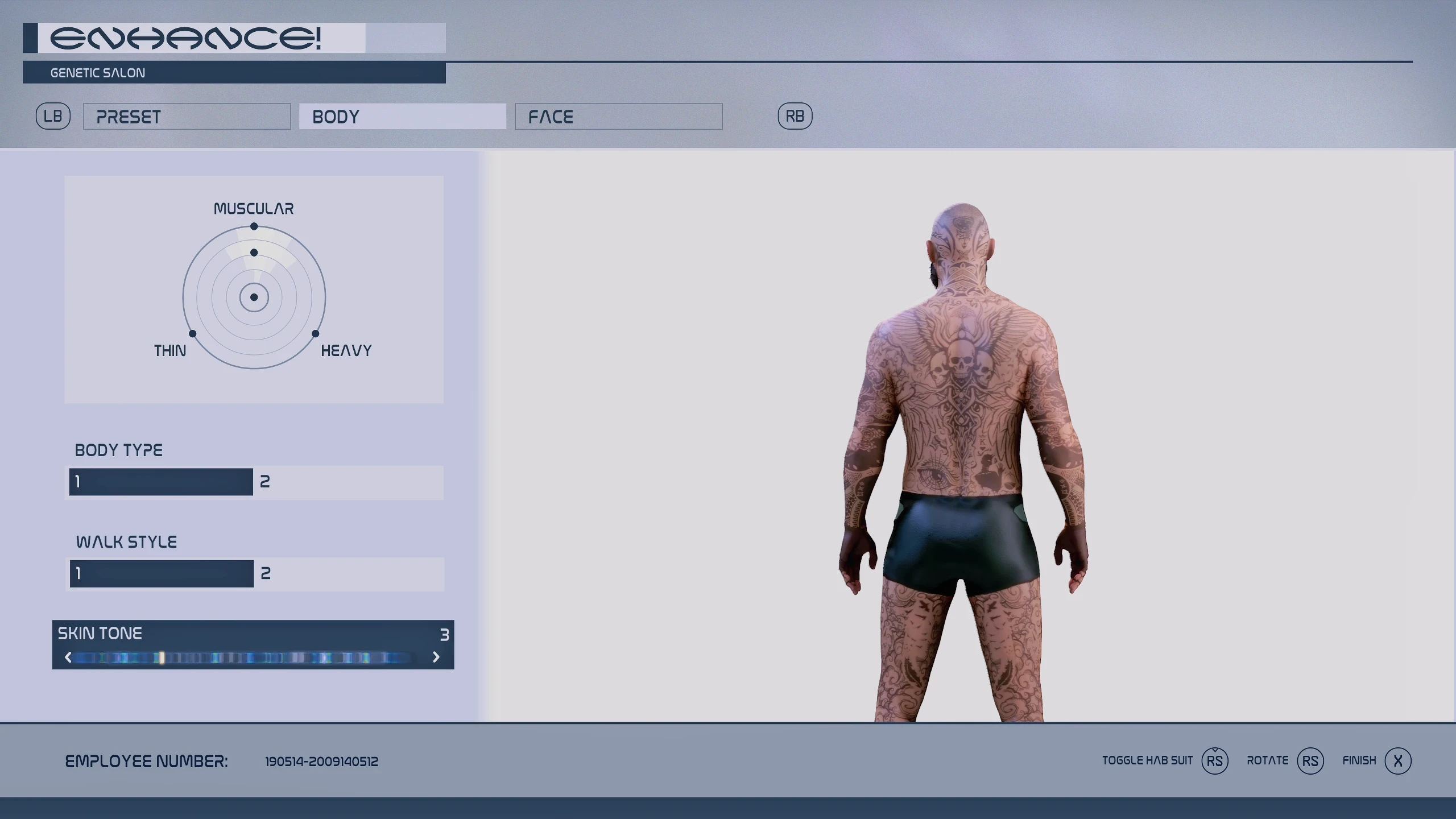 Adds 9 new skin tone choices for all body types – featuring the “nomad” full body tattoo – in the body editing menu