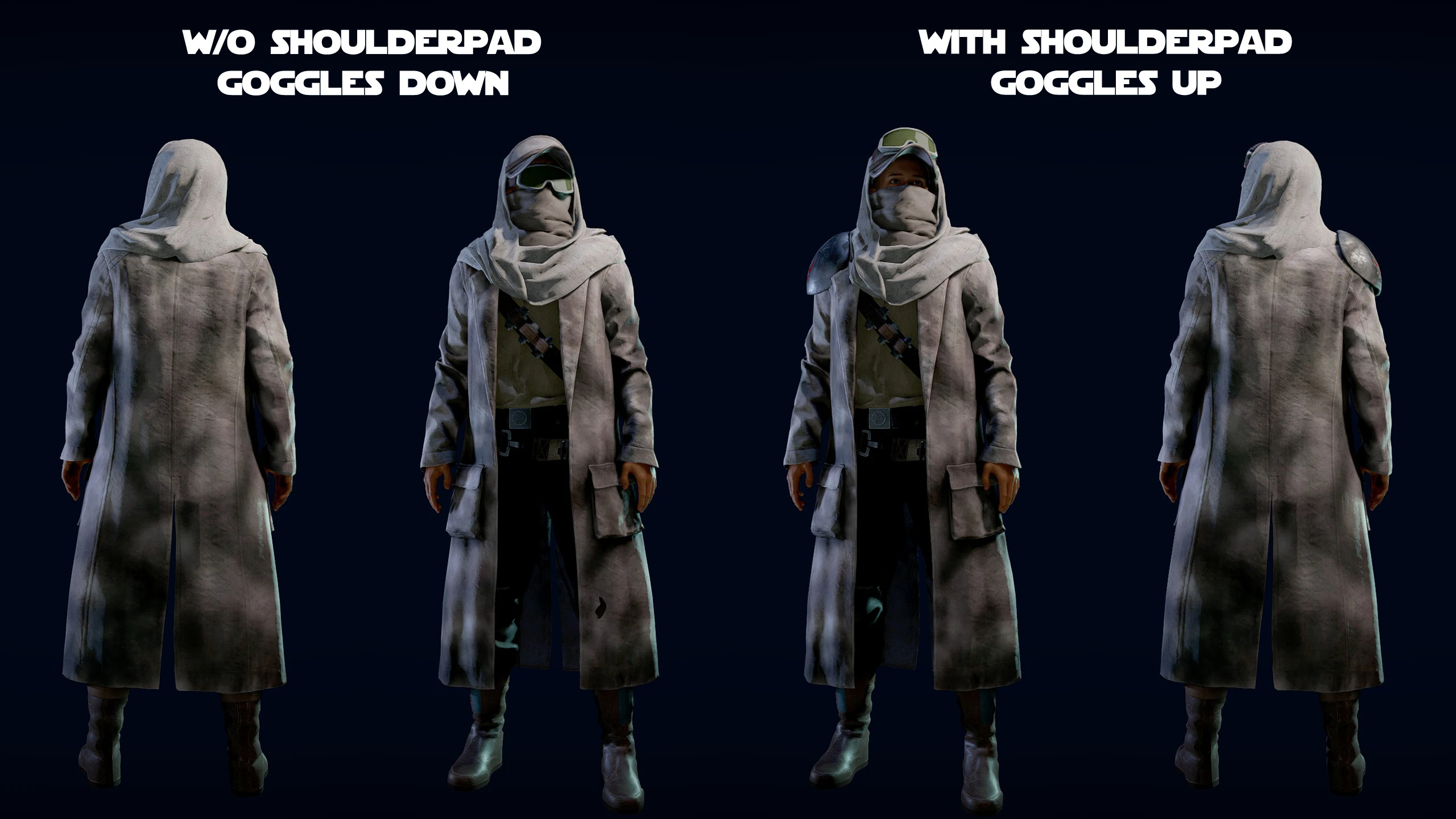 Elite Sniper Outfit in 4 different variations (goggles up or down and shoulderpad yes/no)