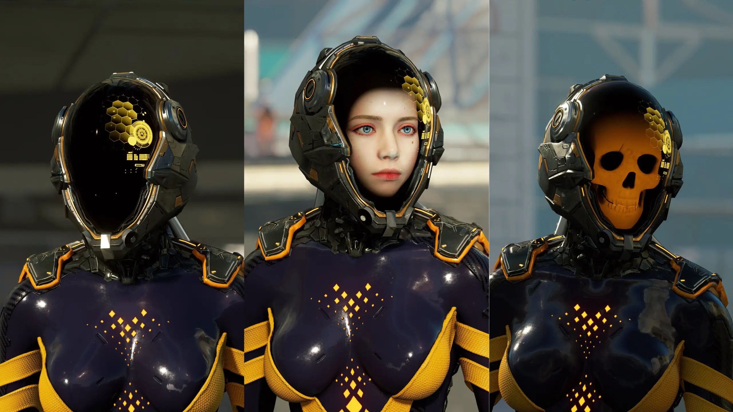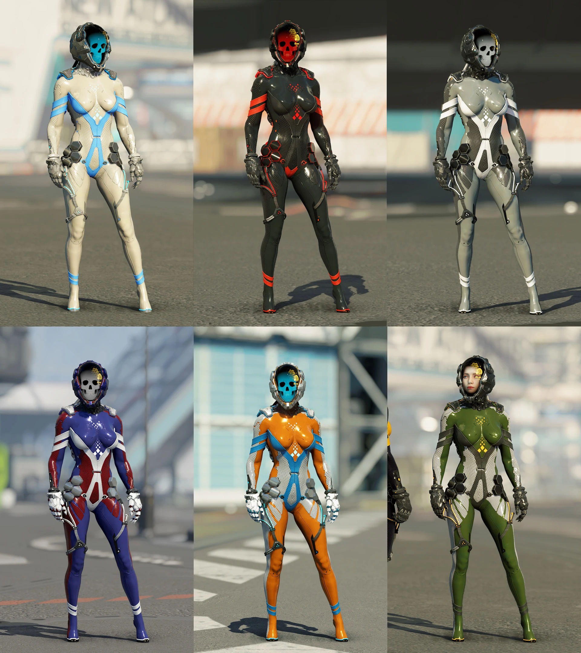 Edited Tachy’s suit and helmet from her boss fight with different color and helmet visor options. Morphs not included so expect clipping on buff or overweight bodytype.