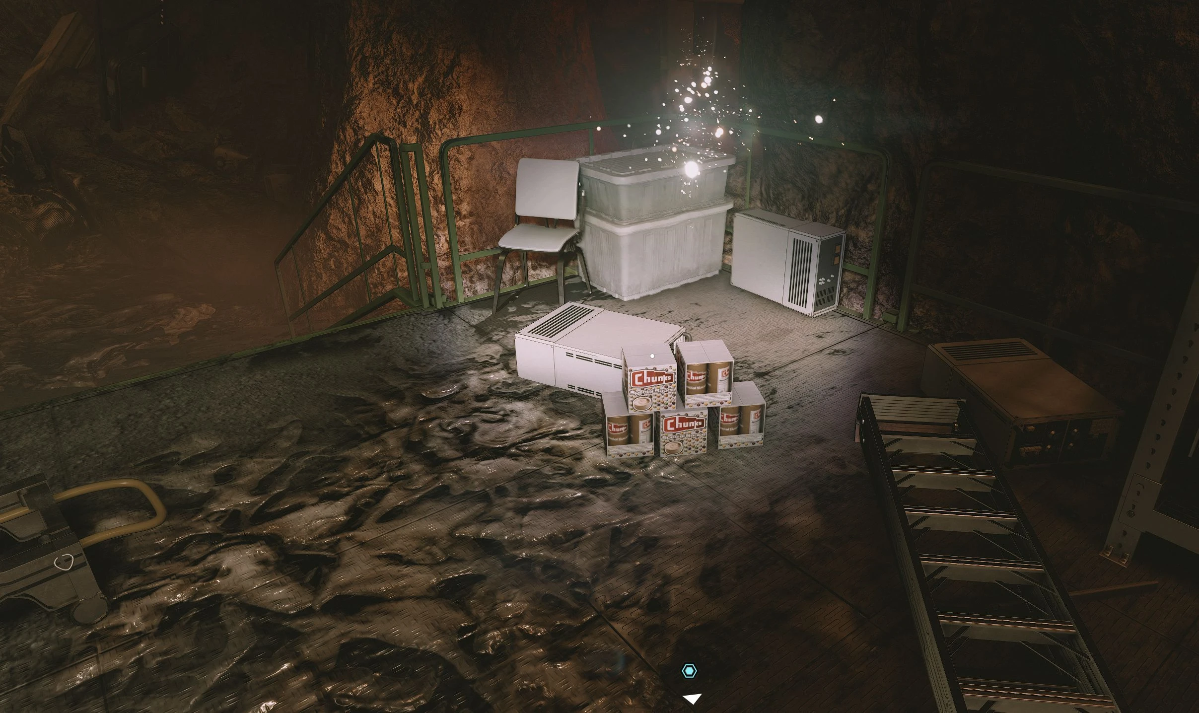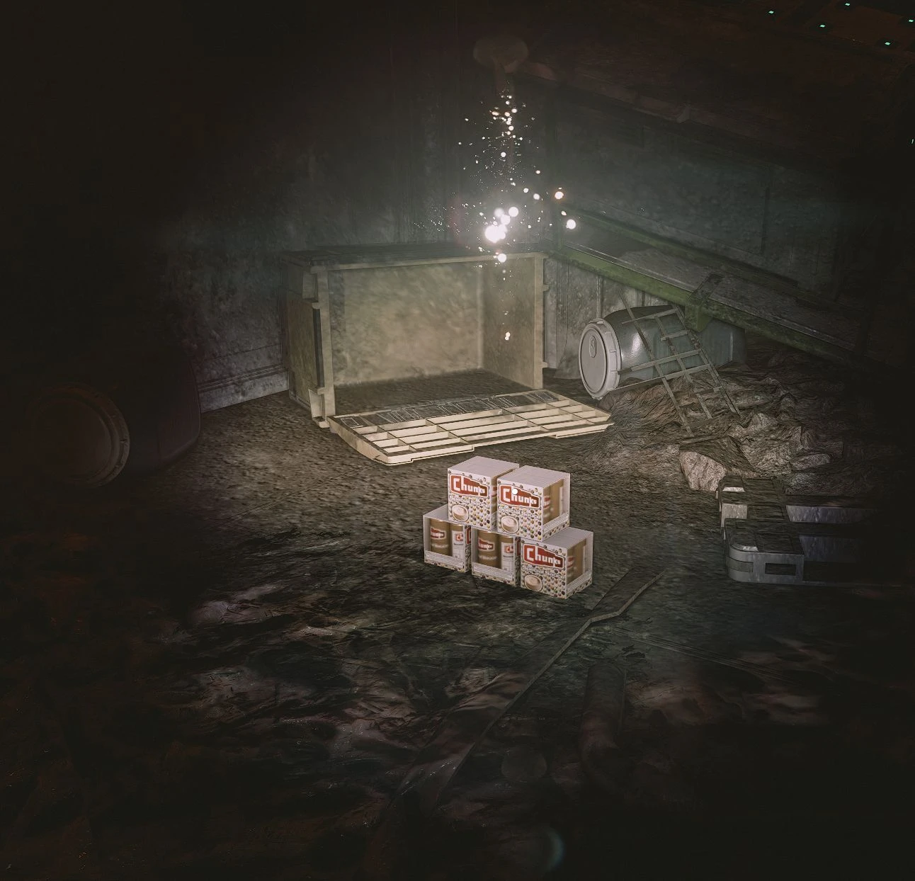 When you exit the elevator, to your right there will be another distortion hovering above a stack of Chunks Special Sauce boxes.