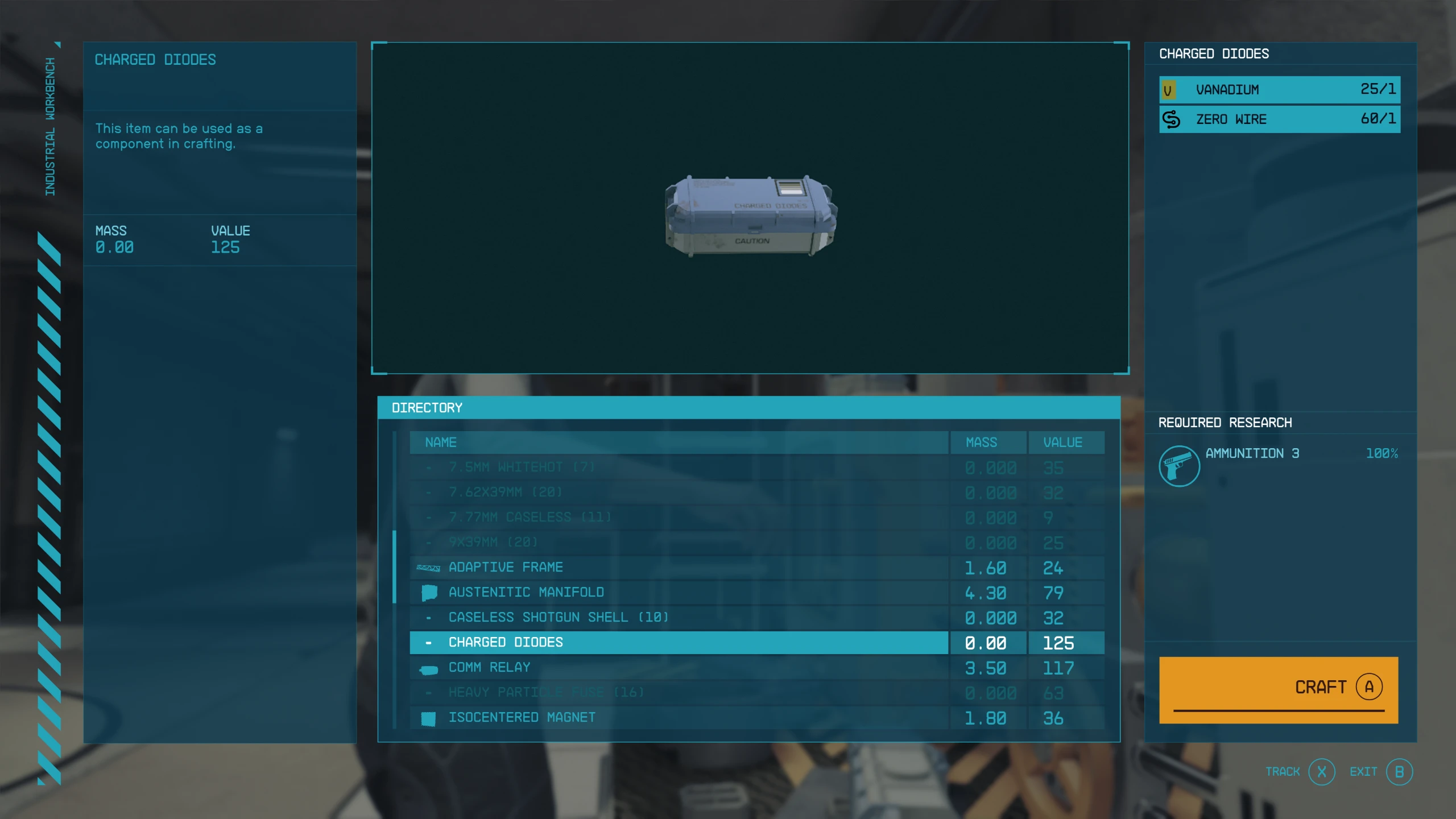 Charged Diodes can be crafted for 1x Vanadium and 1x Zero Wire after completing the Ammunition 3 research project.
