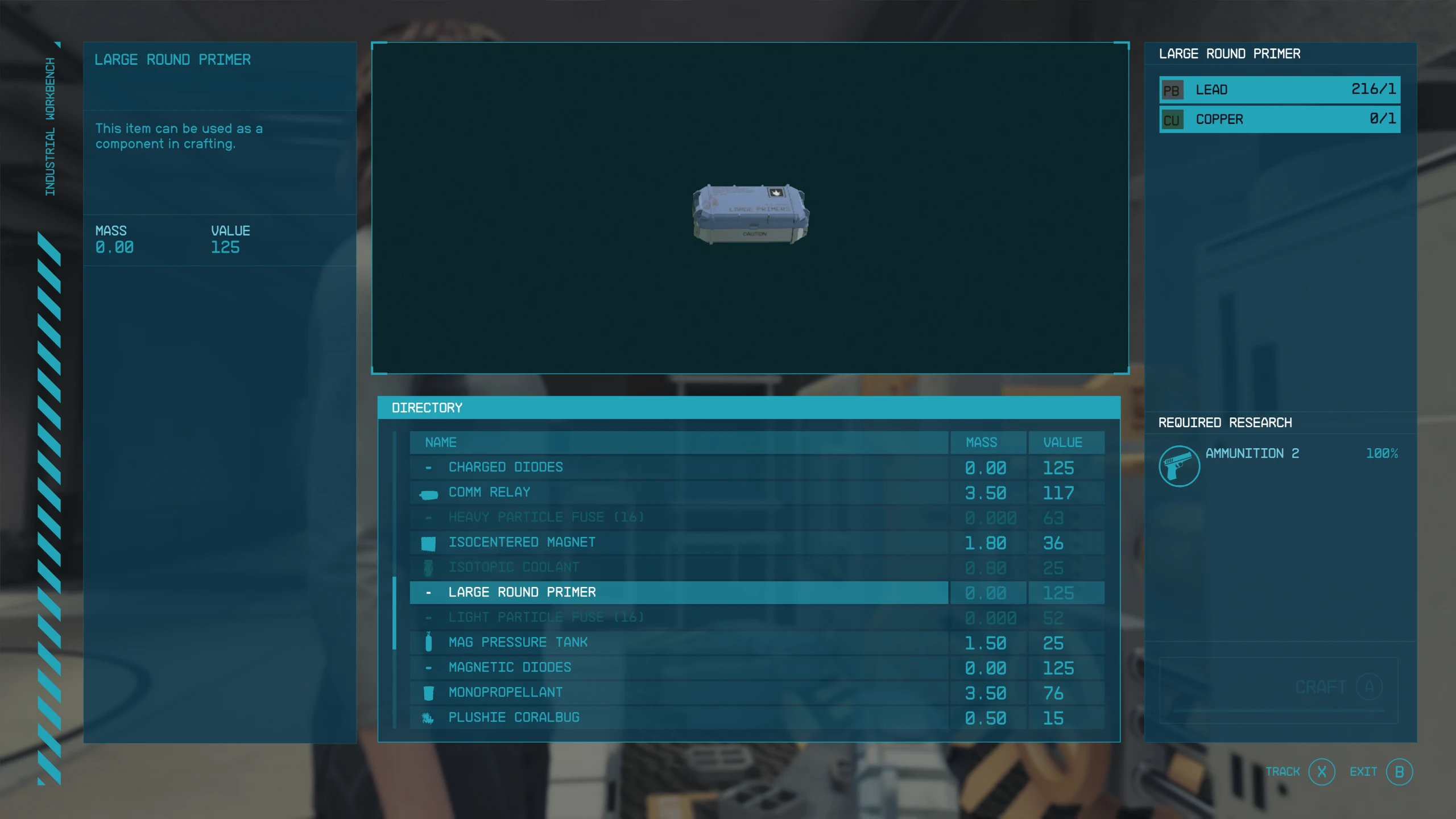Large Round Primers can be crafted for 1x Lead and 1x Copper after completing the Ammunition 2 research project.