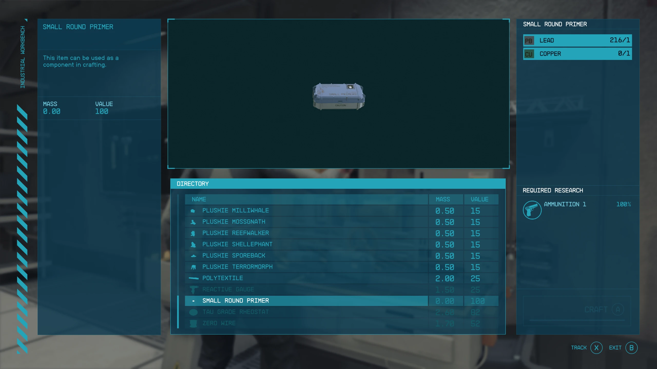 Small Round Primers can be crafted for 1x Lead and 1x Copper after completing the Ammunition 1 research project.