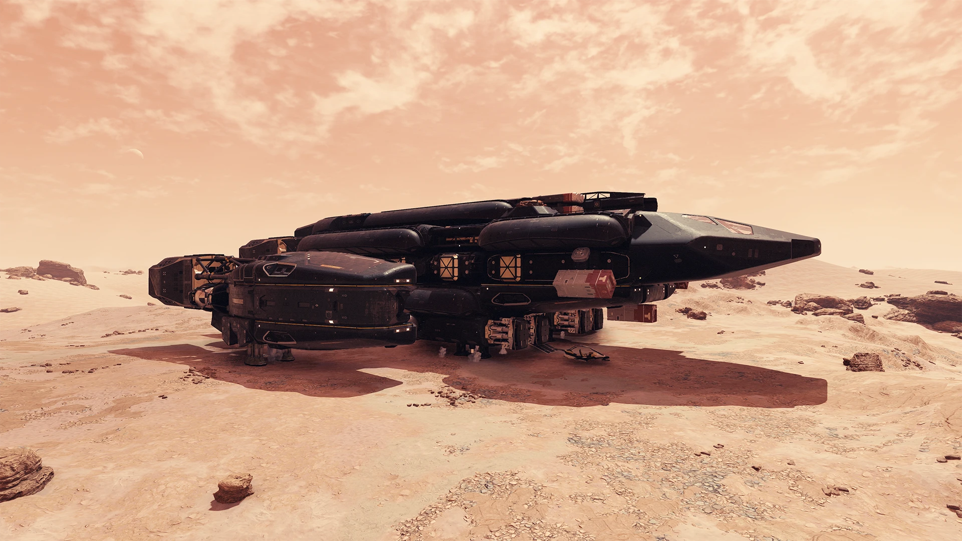 This is more like version IIIV or IX of this ship, it has taken a few rebuilds to get the internal flow and exterior look just right. I wanted to make this Creation so that I can easily obtain it again for each NG+ and share it with all of you good folk; plus it has the added bonus of the quest-only ‘SAL-6830’ engines which you cannot access if you select the NG+ option when passing through the Unity. Tested and fully working – if I have built it correctly you need to be Level 65+ to purchase it, though you are restricted by the usual Skill Tree requirements for Piloting Class C ships.